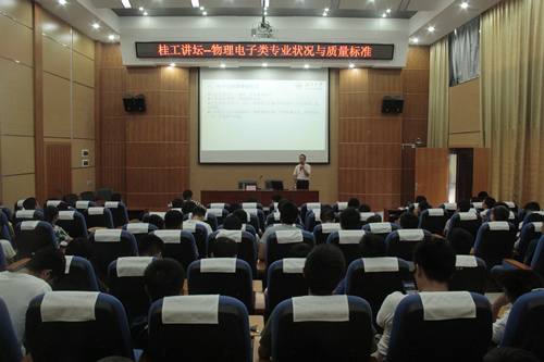6月30日下午,应理学院邀请,湖南大学物理与微电子科学学院党委书记曾云教授在雁山校区萃华楼报告厅作了题为“物理电子类专业状况与质量标准”的报告会。报告会由理学院副院长张富文主持,理学院部分教师及13级应用物理专业全体学生参加了报告会。 会中,曾云教授首先从专业领域、专业基础、研究对象和专业特点等方面给在座师生介绍了物理电子类专业目前的发展状况。他结合电子信息类专业质量标准说明了此类专业培养目标的总体要求:该专业学生应当具有道德文化素养和社会责任感,具有创新精神和创业意识,掌握必备的数学、自然科学基础知识和相应专业知识,具备良好的学习能力、实践能力、专业能力和创新创业能力等。他强调师资队伍数量和结构、教师背景和水平及教学条件对专业建设极其重要,要按照国家有关标准严格执行。最后曾教授对完善电子信息类专业知识教学体系提出了建议,他认为除了国家规定的教学内容外,应增加通识类知识与学科基础知识等学习内容。 曾云教授在此次报告会上向在场师生全面介绍了物理电子类专业状况与质量标准及专业建设的要求,加深了师生们对此类专业的认识和了解,对Beat365官网今后开展相关教学工作、规划学生的职业定位等将起到促进作用。
