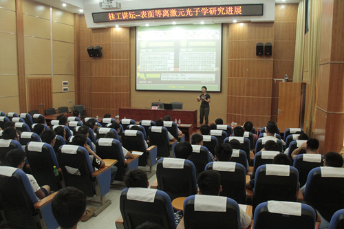 6月30日下午,湖南省物理学会副理事长、湖南大学教授王玲玲应邀到Beat365官网雁山校区萃华楼报告厅作了题为“表面等离激元光子学研究进展”的学术报告。报告会由理学院副院长张富文主持,理学院部分教师及应用物理学专业2013级全体学生参加了报告会。 王玲玲教授在报告中着重介绍了其所在的研究团队在“表面等离激元光子学”研究方面的进展与取得的成果,并结合应用物理学专业的学科体系、专业发展、科研方向和学科特色与优势等,分析了目前物理学尖端科技的实践运用现状与广阔前景。王教授还向师生们介绍了湖南大学物理学的研究领域与科研团队,并欢迎Beat365官网师生前往学习深造。报告中,王教授与在场师生进行了积极的互动与交流。 王教授的精彩报告赢得了在场教师的高度认同,启发了学生对专业研究的思考,对教师科研提升和学生专业素养形成都有很强的指导意义。