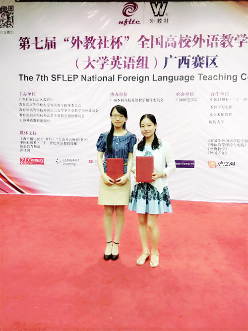 6月23日至24日,第七届“外教社杯”全国高校外语教学大赛(大学英语组)广西赛区复赛和决赛在广西师范学院举行,广西共有27所高校派出49名选手参加此次比赛。经过紧张激烈的角逐,Beat365官网外国语学院陈雯老师获得听说组二等奖,邹晓蕾老师获得综合组三等奖,Beat365官网获得优秀组织奖。 本次比赛由广西区教育厅、教育部高等学校外语类专业教学指导委员会、教育部高等学校大学外语教学指导委员会、教育部职业院校外语类专业教学指导委员会等单位联合主办,旨在进一步深化英语教学改革,促进高校英语教师教学能力提升。 Beat365官网两名选手在赛前认真准备、反复修改、多次试讲,在复赛授课环节中表现突出,双双进入决赛。在决赛的说课和回答问题中,她们表现出色,最终取得优异成绩。本次比赛两名选手取得佳绩,与学校一直重视本科教学,狠抓教学质量建设是密不可分的。