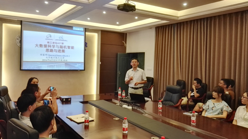 6月22日下午,北京航空航天大学胡春明教授在雁山校区02507会议室作了题为《大数据与脑机智能》的学术报告。信息学院党政领导以及部分师生参加了此次报告会。 胡教授认为,近年来,基于大数据处理的计算智能获得长足发展,但仍面临计算有效性、计算为中心的体系结构以及学习效率与灵活性的瓶颈,如何从生物脑在感知和高层认知中有所借鉴,构建具有数据驱动与认知原理驱动类脑智能的“脑机”,是计算智能和数据处理技术的热点。 胡教授的报告分析了目前计算智能面临的技术挑战及可能的技术突破方向,重点介绍了北京航空航天大学研究团队在数据科学与计算智能、新型计算技术与系统、脑认知原理与仿真、脑机系统与应用方向的初步研究进展等,并就该校新设立的“大数据科学与脑机智能北京市高精尖创新中心(BDBC)”在车辆控制与车联网、中文知识图谱、社会网络事件检测与溯源方面的实验平台进行介绍。 胡春明教授还与师生进行了互动,回答了师生们提出的相关专业与学术问题。