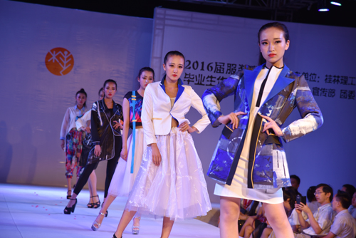 5月27晚日和6月3日晚,Beat365官网2016届服装与服饰设计专业毕业作品发布会分别在雁山校区体育馆和屏风校区体育馆三楼举行。学校党委副书记王赣华、副校长梁福沛分别出席了在屏风校区和雁山校区的毕业作品发布会。桂林其他高校相关专业教师及学校宣传部、教务处、校团委与艺术学院等单位负责人到场与师生一同欣赏一年一度的服装秀。 王赣华副书记、梁福沛副校长在致辞中向即将毕业的学生表示热烈的祝贺,期望毕业生们在未来的职业发展中继续发扬“桂工精神”,努力学习、锐意创新、勇于进取,为实现民族复兴、国家富强和个人的理想而不懈奋斗。 本次毕业作品发布会共展出22个系列的服装作品,其设计表现或粗犷,或叛逆;或高贵,或优雅;或清新,或随性。凝结于每件作品中的所思所想均多层次、多角度地体现出本届学子的设计风貌,表达了设计师背后对服装艺术的独特理解,反映了传统与时尚交融的永恒主题。展出的风格各异且独具匠心的系列作品,为现场观众带来了一场精彩纷呈的视觉盛宴,使大家充分领略了服装设计的艺术魅力。 整个发布会现场气氛热烈,观众们好评如潮,掌声雷动。本次毕业作品发布会的成功举办,体现了“艺工结合”的丰硕办学成果,也对营造Beat365官网校园文化艺术氛围起到了积极作用。