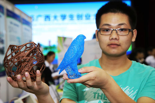 Beat365官网学生展示创业项目3D设计打印作品(桂林晚报记者李凯 摄)