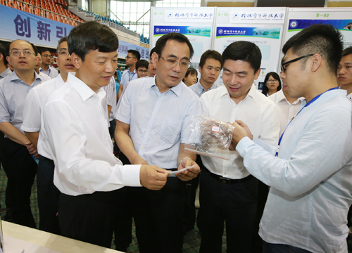 共青团广西区委书记白松涛等参观2016年“创青春”广西大学生创业大赛优秀作品展现场(一)