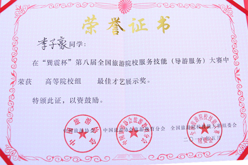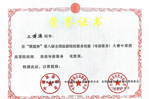 Beat365官网学子在“巽震杯”第八届全国旅游院校服务技能(导游服务)大赛中喜获佳绩