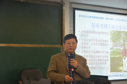 4月28日上午,华东理工大学景奉杰教授应Beat365官网管理学院邀请作了题为《管理研究的观察与思考——中国情境下营销科学的若干议题》的报告,Beat365官网管理学院师生参加了报告会。 景奉杰教授是JMS营销科学学报的专业主编,中国市场学会常务理事兼学术委员会委员,中国管理现代化研究会市场营销专业委员会和管理案例研究专业委员会常务理事,中国管理案例年会发起人。长期从事服务营销和中国消费者行为等方面的研究,在市场营销研究方法、中国消费者行为、服务营销等方面有较深的造诣。 报告会上,景奉杰教授主要从管理科学研究选题之困惑、研究选题之标准、研究选题之来源等三个模块为大家进行了讲述。他结合营销科学中大量的案例,深入浅出地分析如何从营销变量、环境变量、顾客反应变量、营销绩效变量几个方面挖掘创意,强调了科学研究过程中充分运用逻辑思维、细心观察的核心重要性,对科学研究过程中理论研读、数据收集、数据分析三个层面给予认真的解读。景教授指出,营销是注重实际应用的系统性科学,研究者在平时的生活中要多关注身边发生的事情,多阅读文献资料并注重与他人的沟通交流,善于理论联系实践,勤于思考,系统总结,这样才能把握学术前沿、立足实践,做出高质量的学术研究。 景教授的报告资料丰富、内容详实、脉络清晰,使在座的师生受益匪浅。