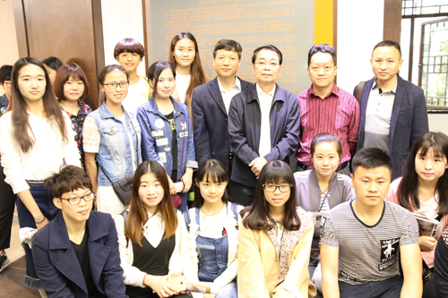 黄格胜教授和学校师生合影留念