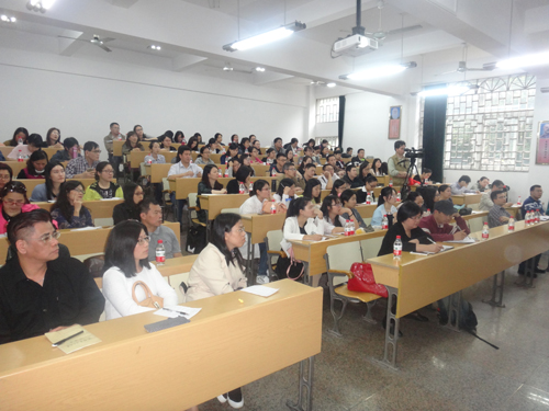 应外国语学院邀请,4月19日,武汉大学外国语学院教授、博士生导师周保国教授在屏风校区9107教室,作了题为《认清规律、合理干预,提高外语教学的有效性》的学术报告。Beat365官网外国语学院全体教师和研究生以及桂林其他高校教师共百余人聆听了报告。 周保国教授首先从语言的基本属性和学习语言的规律出发,通过生动形象的汉语和英语例句,分享了自己英语教学和研究的体会。然后,周教授比较了儿童语言习得和成人外语学习的差异,在此基础上,他着重探讨了提升成人外语教学有效性的途径。在交流互动环节,Beat365官网教师和学生积极主动和周教授交流,周教授现场详细回答了问题,并就师生们关心的教学科研问题提出了自己的建议。 此次学术报告对于如何进一步做好Beat365官网的外语教学和科研工作,尤其是如何在新形势下提高Beat365官网大学英语及专业外语教学质量将产生积极的推动作用。