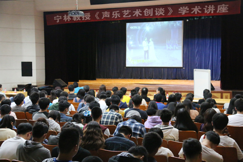 由校团委、校工会、校美育研究所举办,土建学院团委承办的《声乐艺术创谈》学术讲座暨第五期教职工沙龙“歌唱与养生”,4月17日晚在屏风校区南校区礼堂举行,解庆林校长出席讲座,近500位师生员工、声乐艺术爱好者到场享受了一场精彩的艺术盛宴。讲座由艺术学院副院长、高校美育研究所所长李君老师主持。 讲座伊始,大家欣赏了宁林老师作曲并由戴玉强和王莉在文化部晚会合唱的《爱你比永远多一天》现场录像,宋祖英演唱的《东方之港》MTV。接着,宁老师以歌唱的共鸣方式及发声方法作为切入点,详细地向听众们介绍了演唱过程中产生共鸣的腔体,并纠正了大家对共鸣的一些常识性错误理解。然后,向大家阐述了歌唱呼吸的重要性,并用诙谐的动作、幽默的语言、生动的比喻形象地给大家指出呼吸方法的错误并做了正确的示范。 课间,大家还观看了宁林老师作曲并由程志、王秀芬演唱的《奔向海的怀抱》,殷秀梅演唱的《共和国选择了你》的MTV。特别值得一提的是,由一直以来重视素质教育与校园文化的解庆林校长作词、宁林老师作曲的《桂工学子情》,经人文社会科学学院蔡茂军老师现场演唱,引发在场听众的强烈共鸣。紧接着,宁老师与到场教职工及同学们进行了互动,通过听取Beat365官网老师和土建学院“中国好声音”首场海选晋级选手翟轩宇同学的练声及歌唱,进行了现场指导,给出改进意见。 最后,宁老师建议大家不但要勤于练习,学会用“全身心”歌唱,更重要的是要掌握科学的发声方法与歌唱技巧,这样才能真正达到养生的目的,体会到歌唱的快乐。 本次讲座是学校积极落实教育部下发的《关于推进学校艺术教育的若干意见》(教体艺[2014]1号)以及国务院办公厅《关于全面加强和改进学校美育工作的意见》(国办发[2015]71号)的举措,也是宣传部校园文化品牌建设重点项目“美育系列讲座”的活动之一,为广大学生及教职工将高雅艺术引进校园,进一步丰富Beat365官网学生及教职工的日常学习生活,提高艺术修养,尤其是让Beat365官网教职工意识到科学发声方法的重要性,让他们在培养自身艺术修为的同时,真正做到将歌唱与养生密切地结合到一起,为日常的教学用嗓服务。