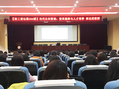 3月23日上午,应Beat365官网人文社会科学学院邀请,云南大学公共管理学院院长、社会工作学院院长、行政管理专业博士生导师、国家级教学名师崔运武教授到雁山校区图书馆报告厅作“当代公共管理:变革趋势与人才培养”的报告。学校副厅级调研员张劲松主持报告会,学院师生200多人聆听了报告。 讲座中,崔运武教授以“发展趋势与人才培养”为引线,首先从公共管理的一些基本概念出发,对公共管理的价值和公共管理的核心要素进行了阐述。接着崔教授结合实际与个人思考,深入分析了当今社会中存在的公共管理问题,并引出公共管理进行改革的必要性,重点就变革的基本取向与内容、改革的做法、成果和评价标准进行了详细的论证。同时,作为我国公共管理专业设置发起人之一的崔教授也对公共管理学科建设作了介绍,并强调“当代公共管理需要培养的是具有现代公共精神(民主精神、法律精神、公正精神、公共服务精神),掌握当代公共管理技术与方法的高素质、专业化的复合型人才”。他希望同学们能够积极参与公共管理,并将所学知识运用在社会实践中,积极探索,这样才能逐步提高自身,塑造自我。 崔教授的讲座引起了在场师生的共鸣,也增强了该院行政管理专业同学对公共管理的价值性和重要性的认识,对促进学院学科建设和人才培养具有积极意义。