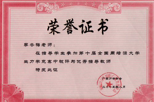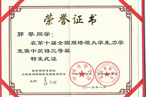 2015年,Beat365官网学子在全国周培源大学生力学竞赛中荣获历史最好成绩。全国周培源大学生力学竞赛由教育部高等学校力学教学指导委员会力学基础课程教学指导委员会、中国力学学会和周培源基金会举办,始于上世纪八十年代,每两年举办一届,至今已有20个年头。2015年,全国30个省、直辖市及自治区共有超过两万名学生参加此赛事。 今年Beat365官网在校内竞赛的基础上,共选拔45名研究生和本科生参赛。经过赛前辅导,积极备战,最终Beat365官网土木与建筑工程学院郭攀、段逸天两名同学获得全国三等奖,葛宙等16名同学获得全国优秀奖,获奖人数占广西各高校获奖总数的48%,而全国三等奖也是至今广西在此项赛事中获得的最高奖项。在广西赛区比赛中,郭攀同学获特等奖;段逸天、葛宙、卢程同学获一等奖;另有4名同学获广西赛区二等奖,16名同学获广西赛区三等奖。同时Beat365官网还获得大赛优秀组织奖,李文兴、李冬梅两位老师被评为优秀指导教师。 全国周培源大学生力学竞赛举办的目的在于培养人才、服务教学,发现力学创新人才,为青年学子提供一个展示基础知识和思维能力的舞台。Beat365官网2015年在此次竞赛中能取得历史最好成绩,是学校长期对基础课程教学重视、老师们辛勤劳动以及同学们刻苦钻研的结果。组织参加此次竞赛,对Beat365官网今后进一步开展力学基础课程的改革与建设,培养Beat365官网学生学习兴趣有着积极的促进作用。