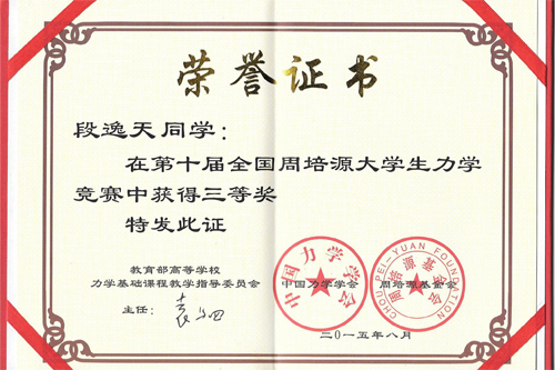 Beat365官网学子在第十届全国周培源大学生力学竞赛中喜获佳绩