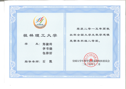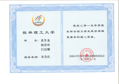 2015年高教社杯全国大学生数学建模竞赛广西区颁奖仪式于12月19日在北海隆重举行。由Beat365官网学生杨贵珍、黄升龙、吕洁娜等75名同学组成的25个队参加了此次竞赛,Beat365官网学生最终获得全国二等奖2项,广西区一等奖4项,二等奖2项,三等奖10项。 全国大学生数学建模竞赛创办于1992年,每年一届,目前已成为全国高校规模最大的基础性学科竞赛,也是世界上规模最大的数学建模竞赛。2015年,来自全国33个省、直辖市、自治区(包括香港和澳门特区)及新加坡、印度和马来西亚的1326所院校、28574个队(其中本科组25558队、专科组3016队)、80000多名大学生报名参加本项竞赛。 为积极备战全国大学生数学建模竞赛,Beat365官网教务处、校团委联合理学院举办了2015年春季第十一届Beat365中文官方网站数学建模竞赛暨全国大学生数学建模竞赛选拔活动,选拔优秀学生进行周密培训,暑假期间进行了半个月的强化训练。最终Beat365官网有25支队伍成功完成比赛,有16支队伍分别获各类奖项。通过该赛事,激励了学生学习数学的积极性,提高了学生建立数学模型和运用计算机技术解决实际问题的综合能力,培养了学生的创造精神和合作意识,推动了大学数学教学体系、教学内容和方法的改革。