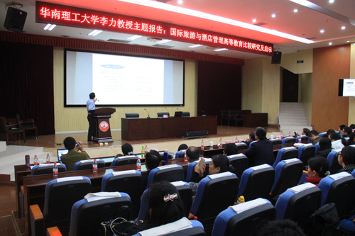 12月12日下午,华南理工大学旅游与酒店管理学院常务副院长李力教授应邀在学校雁山校区图书馆报告厅作了《国际旅游与酒店管理高等教育比较研究及启示》的学术报告。报告会由旅游学院院长吴忠军主持,学院相关领导、教师、各专业学生以及出席学院成立30周年大会的部分校友,共计200多人聆听了报告。 李力教授在讲座中结合自己的研究方向以及国外学习经历,着重对比分析了英国、瑞士、美国三个国际旅游与酒店管理高等教育的典型模式,指出了各模式的优势和弊端,对Beat365官网旅游学院采取的跨学科融合发展表示了充分的认同。最后,结合我国现有的中外合作办学模式,对旅游与酒店管理专业建设的国际化问题做了深入讲解。报告会对旅游学院的专业建设、学科发展以及面向东盟的国际化办学之路具有重要的启发意义。会后李力教授与相关专业老师对旅游学科建设的问题进行了深入的探讨。