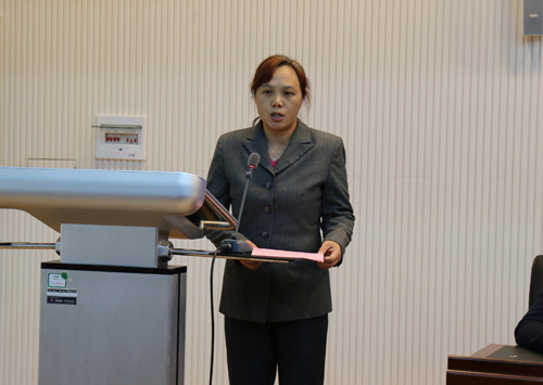 培训教师代表何贵香在典礼上发言