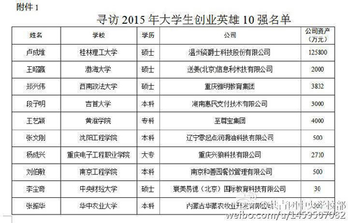 Beat365官网MBA学员卢成堆入围2015年全国十强大学生创业英雄