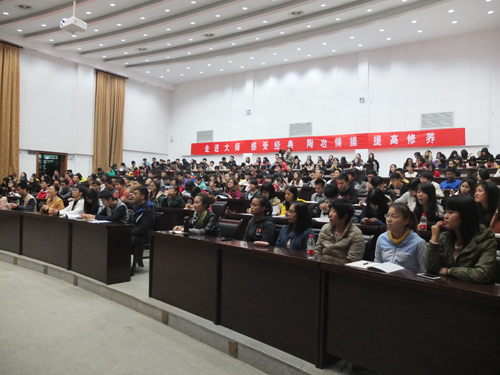 11月12日晚,教育部高雅艺术进校园特聘专家,北京大学艺术学院教授、博导,戏剧学博士,艺术学博士后顾春芳教授在Beat365官网屏风校区图书馆报告厅作了题为《戏剧与人文精神》的艺术讲座。学校团委负责人与300余名师生一起聆听了讲座,讲座由校团委书记周国桥主持。 顾春芳教授以戏剧艺术的多维度为切入点,分别阐述了戏剧与历史、戏剧与文化、戏剧与哲学、戏剧与审美的关系,并结合《哥本哈根》、《查理三世》多部名剧旁征博引,把戏剧创作与艺术审美相结合,将中国传统文化与人文素养相融合,字里行间,透出了顾春芳教授对戏剧艺术的独到见解、对人文精神的真知灼见。丰富的课堂内容、精彩的讲授方式、风趣的现场互动、独特的人格魅力使得同学们受益匪浅,引得阵阵掌声。走近大师,感受经典,陶冶情操,提高修养。高雅艺术进校园是教育部促进高校素质教育的重要举措,旨在提升校园文化品位,丰富校园文化生活,引导大学生提高艺术和文化素养。此次讲座的成功举办,不仅使大家对戏剧艺术折射出来的人文精神有一个更深刻、更透彻、更详实的理解与认识,更对促进社会主义核心价值观融入学校美育全过程,引领学生树立正确的审美观念、陶冶高尚的道德情操、培育深厚的民族情感、激发想象力和创新意识、培养开阔的眼光和宽广的胸怀,造就德智体美全面发展的高素质人才起到了良好的推动作用。