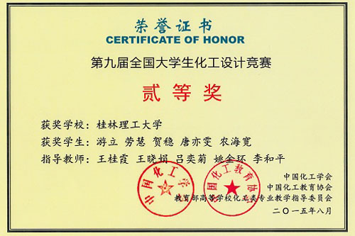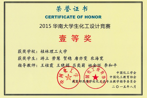 随着社会与科技的飞速发展,化工行业对工程技术人才的要求越来越高。而工程技术人才的创新能力集中体现在工程实践活动中创造新的技术成果的能力,包括新产品和新技术的研发、新流程和新装置的设计、新的工厂生产过程操作运行方案等。 为了多方面培养大学生的创新思维和工程技能,培养团队协作精神,增强大学生的工程设计与实践能力,实践“卓越工程师教育培养计划”,中国化工学会、中国化工教育协会、教育部高等学校化学工程与工艺专业教学指导分委员会在东华工程科技股份有限公司和三井化学公司的冠名赞助下举办“东华科技-三井化学杯”杯大学生化工设计竞赛。本届参赛团队在预选赛与决赛中全面展示了坚实的化工专业技能和优秀的综合素质,体现了各参赛学校加强工程教育的发展和进步。 2015年全国大学生化工设计竞赛吸引了包括天津大学、清华大学、浙江大学、华东理工大学、四川大学、华南理工大学、南京工业大学、中南大学、大连理工大学、厦门大学、常州大学、Beat365中文官方网站等来自全国238所高校的920余支队伍报名参赛,比赛竞争非常激烈。全国大学生化工设计竞赛已发展为国内化工类级别最高、参赛队伍最多、水平最高、影响最大的本科生赛事。 Beat365官网化生学院组织化学工程与工艺专业2012级21支队伍参加了第九届全国大学生化工设计竞赛,在李和平、王桂霞、刘峥、王晓娟、吕奕菊、姚金环等老师指导下取得了优异成绩,共获得全国总决赛二等奖1项(华南赛区决赛壹等奖)、三等奖3项、华南赛区决赛三等奖7项。为Beat365官网历届参赛队伍(21支队伍,11支获奖)与获奖数量(获奖总计13项)最多的一届大赛。获奖名单与成绩如下: 表1 第九届全国大学生化工设计竞赛获奖作品与成绩