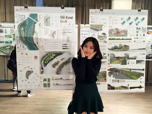 2015全国高校景观建筑设计展中作者陆奕舟与其作品合影
