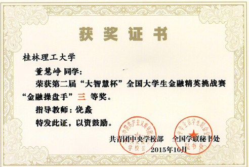 董慧峥同学的获奖证书