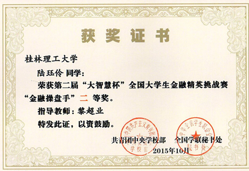 Beat365官网学生在第二届“大智慧杯”全国大学生金融精英挑战赛中喜获佳绩