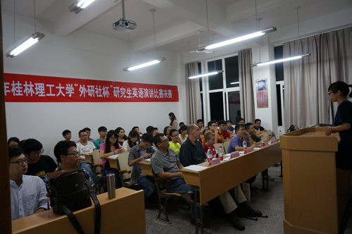 为了加强研究生同学的英语学习和交流,提高他们英语学习积极性,丰富研究生的课余生活,同时也是为校选拔优秀英语演讲代表参加广西高校赛事的角逐,由外国语学院、研究生院共同主办,研究生会承办的“2015年Beat365中文官方网站英语演讲大赛暨2015年‘外研社杯’全国英语演讲大赛选拔赛”于10月19日晚在屏风校区09318教室举行。在研究生公共英语教研室和学校研究生会的精心组织策划下,同学们积极参与,使本次活取得了圆满成功,达到了预期的效果。 在复赛环节,选手们以“vegetarianism”为题进行3分钟的定题演讲,从不同的角度诠释了各自对素食主义的理解。外国语学院的骆晓玲老师、彭奉天老师、张华老师、以及外教George老师、Mia老师担任本次复赛评委。比赛紧张有序,精彩纷呈。17名选手分别经过定题演讲和评委提问两个环节,由评委现场打分决定名次,最后8人进入决赛。 入围决赛的8位选手于10月26日晚在屏风校区09318教室进行决赛。外教Arina、Alex、全克林老师、莫毅德老师、彭奉天老师担任评委。选手们以抽签定序,现场抽题的方式依次上台进行3分钟即兴演讲和两分钟的答问环节。外教在点评中表扬了同学们以优美的语言、深刻的思想、丰富的知识和优异的台风诠释了英语演讲艺术的魅力,充分展示了Beat365官网研究生的良好精神风貌和良好的英语应用能力,对促进不同文化的交流和不同民族的相互了解大有裨益。同时也指出了选手们在演讲中存在的不足,鼓励同学再接再厉。 经过激烈的角逐,外国语学院的张倩倩同学拔得头筹,荣获特等奖,一等奖由来自土木与建筑工程学院的杨振东同学获得,2名二等奖的获得者分别是材料学院的黄博和地球科学院的贾玉衡,4名三等奖获得者分别是化生学院的郝杰、材料学院的韩艺丰、旅游学院的黄文娇和土建学院的梁靖。