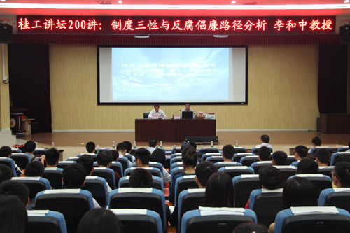10月19日上午,应人文社会科学学院邀请,武汉大学李和中教授在学校雁山校区图书馆报告厅作了题为“制度三性与反腐倡廉路径分析”的学术报告会。报告会由学校副厅级调研员张劲松主持。人文社会科学学院部分师生参加了报告会。 报告会围绕腐败周期律看制度设计的‘三性’、制度设计缺失的归因分析和推进“不敢腐、不想腐、不能腐”制度建设等三个方面展开。李和中教授结合古今事例,旁征博引,从明朝开国反腐倡廉建设谈到了当今反腐态势,着重强调了制度设计是反腐的基础。接着,李和中教授结合近年我国查处的典型腐败案例,深度剖析制度设计缺失的原因,并从制度“三性”出发,就形成“不敢腐、不能腐、不想腐”的长效机制提出了政策建议。 李和中教授的精彩报告拓宽了大家的视野,让Beat365官网师生收获颇丰。