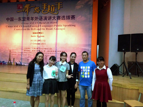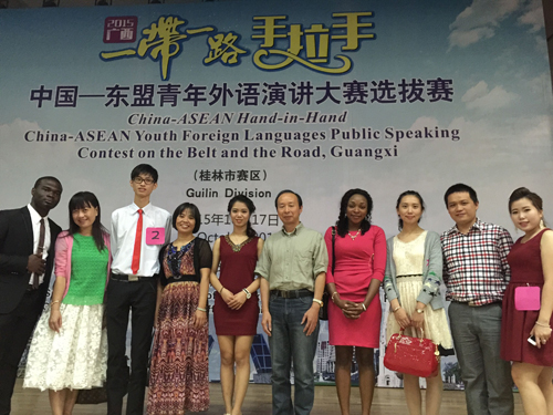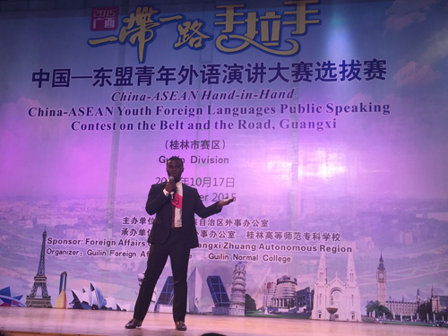 10月17日,由广西壮族自治区外事办公室主办的“一带一路手拉手”中国—东盟青年外语演讲大赛桂林赛区选拔赛在桂林师范高等专科学校举行。本次比赛共分为汉语组、东盟非通用语组、英语组三个大组,吸引了我市高校共27名选手参赛。 经过激励的角逐,共有5位选手晋级决赛,其中Beat365官网选手表现优异,喀麦隆留学生大卫、马来西亚留学生林淑盈晋级汉语组决赛,外国语学院江蓝梦同学晋级英语组决赛。赛场上,选手们激情洋溢地讲述了自己与“一带一路”,与东盟,与广西友好交流的动人故事,传递了“中国—东盟一家亲”正能量,展示了Beat365官网学子的青春风采,博得现场观众的阵阵掌声。 据悉,广西“一带一路手拉手”中国—东盟青年外语演讲大赛,是全区乃至全国一场重大的公共外交活动,对深化中国—东盟传统友谊,宣传和服务国家总体外交、周边外交战略特别是“一带一路”战略具有重要的意义。全区决赛将于10月25日在南宁举行。