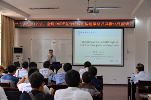 9月28日上午,应有色金属及材料加工新技术教育部重点实验室、材料科学与工程学院的邀请,中国科技大学吴宇恩教授在Beat365官网屏风校区2106报告厅作了题为“金属/MOF复合结构的构建策略及催化性能研究”的学术报告。报告会由材料学院匡小军教授主持,材料学院的领导及Beat365官网相关专业的师生参加了此次学术交流。 报告会上吴宇恩教授首先介绍当前的研究热点——“金属/MOF(金属有机聚合物)复合材料”,接着结合自己近期的科研工作,详细介绍了通过MOF的材料特性在原子尺寸上设计和控制从而构建新型特殊结构的纳米材料。最后介绍了通过金属/MOF材料控制某些化学反应的中间反应过程、MOF增强离子表面催化活性提高气体(如氢气、氮气)的储存能力等。 吴宇恩教授精彩的报告赢得了师生们热烈的掌声。吴教授还与到场师生就有关学术问题进行了深入探讨和交流,师生们表示很受启发。