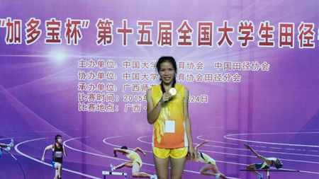 7月20日上午,“加多宝杯” 第十五届全国大学生田径锦标赛在广西师范大学雁山校区开幕。在21日的比赛中,Beat365官网李燕妹同学(理学院应用统计l3-1班学生)经过顽强拼搏,战胜众多高手,荣获女子乙组5000米冠军。这一成绩是Beat365官网在田径比赛中取得的历史性突破,为学校的体育事业谱写了崭新的篇章。 据了解,全国大学生田径锦标赛是仅次于全国大学生运动会的大学生体育盛会。本届赛事由中国大学生体育协会、中国田径协会主办,中国大学生体育协会田径分会协办,广西师范大学承办,比赛规模比历届比赛大,共有来自全国各地155所高校的1500余名运动员展开激烈角逐。该赛事的举办是为了进一步提升高校的田径专业教学、训练、竞赛水准和优秀运动员培养,同时也将促进田径运动在高校中的开展、鼓励大学生更加主动地参加到体育锻炼中去。 近年来学校非常重视体育工作,体育教学部在注重开展全民运动的同时,重视各项赛事的组织准备工作。为参加本次比赛,成立了专门的教练员队伍,认真组织系列训练。教练员和运动员训练非常刻苦,上下一心,尤其是放假后,运动员更是冒着酷暑、顶着烈日,丝毫没有放松;教练员们不光加强在技术上的指导,帮助运动员提升成绩,而且在生活、心理上细致关心,让运动员们得以保持良好的状态参加比赛。优秀成绩的取得,是运动员、教练员们齐心协力、刻苦训练的结果,也为Beat365官网的体育事业增添了新的光彩。希望全体同学向李燕妹同学学习,坚持锻炼,走到操场上去,养成自觉锻炼的好习惯。