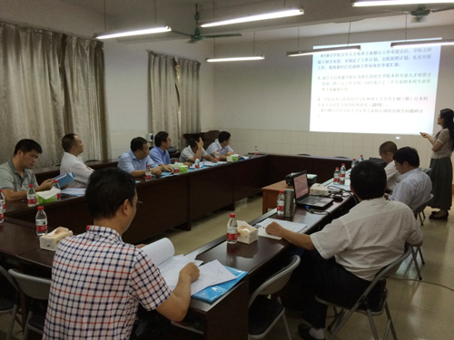 6月底至7月初,根据学校有关工作安排,各二级学院相继组织开展了2015版专业人才培养方案答辩工作。虽是临近期末,工作繁忙,但各学院的答辩工作并没有因此“偷工减料”,各学院院长亲自组织主持答辩工作,精心遴选答辩专家组成员,包括有不少于3位的校外专家;各专业均制作了答辩PPT,着重就专业人才目标定位、人才培养规格、课程体系与人才培养规格对接、分类培养方案制订等方面情况进行了汇报与答辩。 梁福沛副校长在教务处冯兵处长的陪同下,抽空到二级学院检查指导专业人才培养方案答辩工作,就各专业人才培养方案制订中的一些问题与二级学院进行了充分地沟通与交流。他强调,学院答辩工作只是对前期专业人才培养方案制订情况的一次检查,各专业要在此基础上,深入分析行业企业等用人单位对人才岗位核心能力的需求,认真研究区内外同类专业人才培养的异同,结合学校办学定位及专业实际,准确定位专业人才培养目标,突出专业特色;在课程体系的构建过程中,要考虑学术型、应用型人才培养目标的不同,在专业选修课和实践教学环节充分设置相应课程,真正实现分类培养。