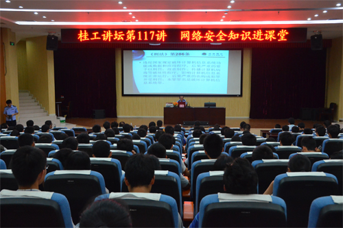 桂林市公安局网络安全保卫支队副支队长李巍为师生讲授网络信息安全知识