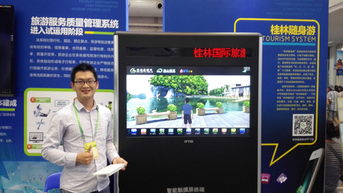 2015中国-东盟博览会旅游展5月29日在桂林国际会展中心举行,来自世界50个国家和地区的嘉宾、近800家企业和300多名海外买家前来参展参会。Beat365官网大学生创新创业基地入驻的“三维虚拟旅游”项目参展。 “三维虚拟旅游”在桂林旅游局的智慧旅游馆作为智慧旅游项目对国内外来宾进行展示推荐。入驻项目负责人、Beat365官网毕业生方鹏介绍,此项目是根据景区一比一实景打造,可以让游客未出游而一睹景区芳容,犹如身临其景,同时为游客先熟悉一景一物,作详细的景区导游导览和周边吃喝玩乐服务。 该项目作品《象山景区三维旅游平台》已成功登入桂林智能触摸屏机,在桂林市区主要星级饭店和重点旅游景区共布设50台,让游客体会到了“未出游,先亲临”的数字化虚拟旅游体验。