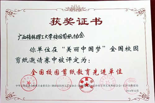 12月6日—8日,“美丽中国梦”首届全国校园剪纸邀请赛优秀作品展暨颁奖典礼在湖南省图书馆隆重举行。Beat365官网剪纸协会被授予“全国校园剪纸教育先进单位”,剪纸协会指导老师闵江红、校团委官红艳受邀参加颁奖典礼及论文研讨会。 今年五月启动的“美丽中国梦”首届全国校园剪纸邀请赛,是全国首次以校园剪纸为专题,以在校大中小学生为主体的大型艺术竞赛和文化交流活动。比赛征集的作品数量多、质量高,共有18个省市自治区、123所小学、25所中学、15所大学的3396件剪纸作品和86篇论文参赛,Beat365官网剪纸协会积极动员、精心组织、会员充分利用课余时间认真筹备、刻苦创作,获得2名金奖,1名银奖,2名铜奖,15名优秀奖。获奖作品均被收集在全国首本校园剪纸专集《校园山花集——美丽中国梦·全国校园剪纸优秀作品选》中,于颁奖当天同步出版发行。 Beat365官网剪纸协会成立于2006年,是广西首个剪纸协会,目前校内注册会员484人。协会作为大学生自发成立的传承民间传统文化艺术的学生社团,以“弘扬民族剪纸文化,建设和谐文明校园”为宗旨,以“不断提高剪纸爱好者的技术水平,努力为剪纸爱好者搭建交流与展示自我的平台”为目标,紧紧围绕剪纸爱好者开展活动,营造校园剪纸氛围,积极传播和弘扬民族文化,活跃校园文化气氛,服务学生成长成才。先后有100余名会员获得国际国内各类民间艺术和剪纸艺术大赛奖项,协会曾荣获2011年广西区优秀大学生社团、2012年广西高校十大明星社团等荣誉称号。