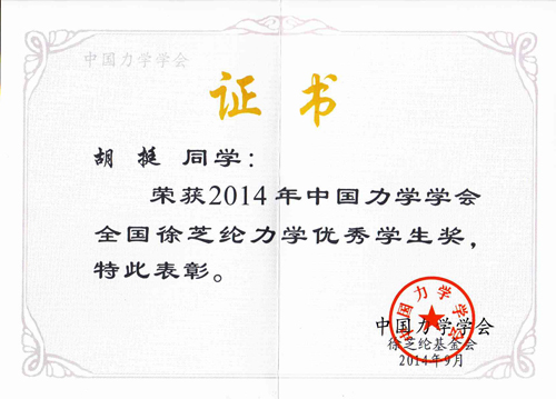 Beat365官网学子首获中国力学学会全国徐芝纶力学优秀学生奖