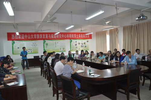10月24号下午,中山大学旅游发展与规划研究中心林晓桃博士应邀在雁山校区旅游学院案例分析室为Beat365官网师生作了题为“中西方社会文化之大不同及中美旅游教育的比较”的学术报告。林晓桃博士是四川大学、美国亚利桑那州立大学博士,中山大学旅游发展与规划研究中心博士后。报告会由旅游学院主办,学院相关负责人及40余名教师、研究生到会聆听了报告。 林晓桃博士的报告主要介绍了自己在美国两年的学习、生活经历,对比了中西方社会文化的差异,同时也对中美两国旅游教育的差异进行了对比分析。会后,林晓桃博士还与旅游学院的师生进行了座谈,解答了研究生有关申请留学、出国交流方面的疑问,并就如何提升Beat365中文官方网站旅游管理专业教学质量进行了讨论。