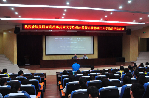 10月24号上午,美国亚利桑那州立大学Dallen J.Timothy教授应邀在雁山校区图书馆报告厅为Beat365官网师生作了题为“Cultural Heritage and Tourism Current Issues and Future Direction”的学术报告。报告会由旅游学院主办,学院相关负责人及200多名师生聆听了报告。 Dallen教授的报告介绍了文化遗产旅游的定义和特点、文化遗产旅游的核心内容和研究热点,并分析了文化遗产旅游的前沿研究动态和发展方向。整场报告内容丰富、图文并茂、幽默风趣,让师生们享受了一场生动的学术盛宴。 报告结束后,Dallen教授还参观了旅游学院的教研室和实验室,并就学术研究、学术交流与师生进行了互动交流,耐心地解答了他们的问题。 Dallen教授是美国亚利桑那州立大学可持续发展高级科学家、社区资源利用与发展教授、旅游发展与管理项目主任、英国桑德兰大学遗产旅游方向客座教授以及印第安纳大学地理系客座教授,也是Journal of Heritage Tourism期刊主编和12个国际期刊的编委。