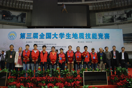 第三届全国大学生地质技能竞赛于日前在吉林大学落下帷幕。本次竞赛共分地质技能综合应用、野外地质技能竞赛、地质标本鉴定和地学知识竞赛四个单元。Beat365官网选派的资源勘查工程专业2011级曾庆锋、张东伟、蒋新红、李逸雄、李金锋、王剑、姚志亮、钟善富和黄倩雯等9名同学组成三支代表队参加了本次竞赛,同学们经受住了重重考验,荣获单元竞赛一等奖1项,二等奖2项,三等奖2项,优胜奖2项,并获团体三等奖;另外,在闭幕式上进行的地学知识竞赛单元(仅前三个单元综合排名前九名的学校参加),曾庆锋、李逸雄和王剑代表Beat365官网参赛,经过激烈的比拼,最终获得了本环节团体二等奖的优异成绩。 全国大学生地质技能竞赛是由中国地质学会、中国地质学会地质教育研究分会、教育部高等学校地质学类专业教学指导委员会、教育部高等学校地质类专业教学指导委员会联合主办,竞赛旨在激励大学生学习和运用地学知识的积极性和创造性,推动高等学校地学教学体系、教学内容和教学方法的改革,不断提高地学人才培养质量。随着竞赛的不断深入,竞争也越来越激烈,北京大学、南京大学、中南大学、中国地质大学、中国矿业大学、中国石油大学、中山大学和成都理工大学等来自全国的52所院校、141支代表队的420多名选手参加了本次竞赛。
