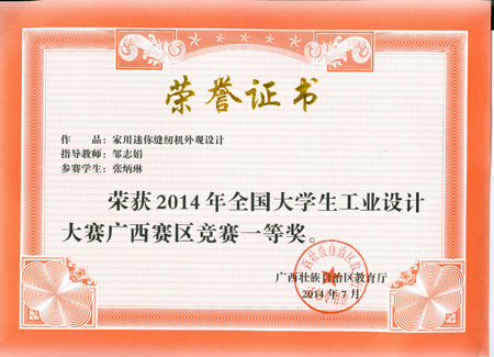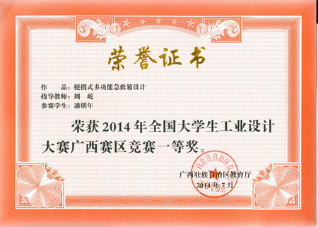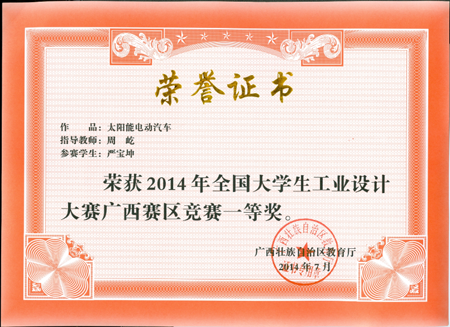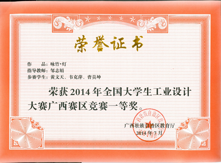 7月5日至6日,在自治区教育厅主办、广西大学承办的2014年全国大学生工业设计大赛广西赛区竞赛上,由沈艳、邹志娟、龚荣辉、周屹四位老师指导的学生作品,获得了广西赛区一等奖6项,二等奖4项,三等奖8项的好成绩。同时,由于学校教务处的大力支持与艺术学院工业设计教研室的积极筹备,Beat365官网还获得广西赛区最佳院校组织奖;沈艳、邹志娟、龚荣辉、周屹四位老师获得优秀指导老师荣誉称号。 另悉,2014年9月23日经过广西赛区组委会的选拔与推荐,Beat365官网的4件作品代表广西参加了2014年全国大学生工业设计大赛全国总决赛,作品《交通指挥——智能手套设计》、《太阳能电动自行车》在全国总决赛中获得优秀奖。 2014年全国大学生工业设计大赛由教育部高等学校工业设计专业教学指导委员会和广东省教育厅联合主办,是面向全国大学生开展的公益性工业设计创意实践活动,大赛旨在贯彻落实国务院有关推进文化创意和设计服务与相关产业融合发展的有关精神,推进高校工业设计人才培养模式改革,为中国制造业、创意产业寻找设计新力量提供最佳途径和机会。