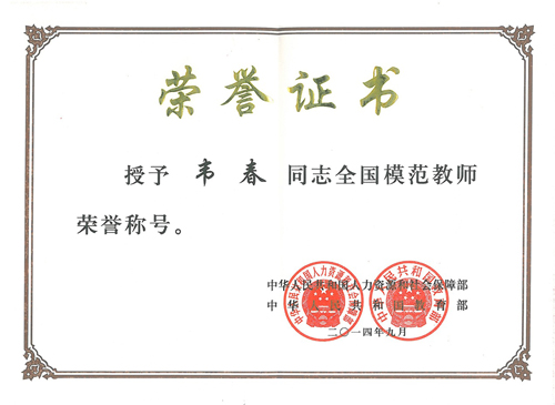 韦春教授作为全国模范教师代表应邀赴京参加表彰大会