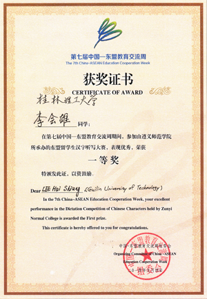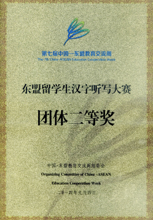 日前,由外交部、教育部和贵州省人民政府主办的第七届中国-东盟教育交流周“中国-东盟留学生汉字听写大赛”在遵义师范学院举行。 此次“中国-东盟留学生汉字听写大赛”作为第七届中国-东盟教育交流周“中国-东盟青少年板块”系列活动之一,旨在让留学生通过“享汉字之美,展勤学成果”的方式,深入了解丰富多彩的汉字文化和传播博大精深的中华文明,为促进中国-东盟全方位、多层次的交流与合作奠定良好的基础。 大赛经过选拔,共有湖北大学等10所高校的东盟留学生参赛,分为初赛、复赛、决赛三个阶段。经过紧张激烈的比赛,Beat365官网派出的5名东盟留学生团结互助,发挥出色,获得团体二等奖,马来西亚留学生李会雄以优异成绩获得唯一的个人一等奖。
