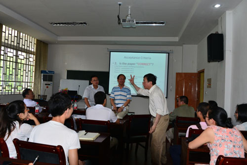 应材料科学与工程学院和国家重点实验室培育基地的邀请,6月9日上午,来自美国新奥尔良大学的David Hui教授以如何提高论文的期刊接受率为主题,给师生们带来了一场精彩的报告。 David Hui教授是美国新奥尔良大学机械工程专业教授,复合材料研究所主任,主要从事复合材料、纳米材料,特别是机械工程、空间工程、船舶工程领域材料的研究,并致力于应用能量功能梯度技术等改善材料在极端环境下的耐久性和安全性研究。David Hui教授是Composites B Engineering journal的主编以及其它40多家国际期刊的编委,ASME、AIAA、CASI等多个学会的特别会员。David Hui教授参编了近300本专业出版物,Google引用超过20万次,论文ISI引用超1400次。 在两个小时的报告过程中,David Hui教授以其独特的讲课方式紧紧抓住了在场师生的心,通过巧妙的举例使枯燥的内容变得妙趣横生,通过现场示范使高深的理论变得浅显易懂,为在场师生展现了论文写作技巧和教学方法的魅力。