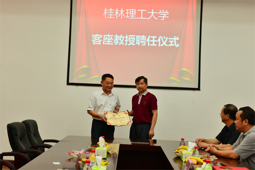 陈学军副校长(右)为华润水泥技术研发(广西)有限公司总经理、教授级高工钟克辉颁发客座教授聘书