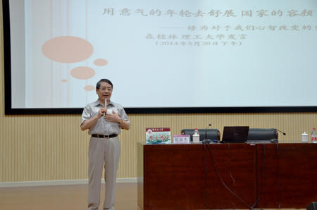 5月20日下午3:00,自治区党委党校副校长、行政学院副院长陈林杰教授应邀到Beat365官网桂工讲坛,在雁山校区图书馆报告厅为师生们作了《用意气的年轮去舒展国家的容颜》的专题报告。学校党委副书记、纪委书记陈贵英主持报告会。 陈林杰教授在报告中向大家提出了一个个深刻的思考:如何认识国家的容颜?刘毅生的时代似乎已经离我们很远!他那个时代的革命精神在我们心中还留下多少?共产党人如果心中没有了人民,会是什么结果?如何沟通这穿越长年的历史?共产主义社会仍是共产党人的崇高而不懈追求。我们的生活空间需要无处不在的“修为”弥漫着。儒道相继为什么生成了中国人格?两千多年前的经典和今天的党性修养到底告诉了我们什么是生命的觉悟?围绕这些问题,陈教授畅谈了修为对于我们心智改变的重要。 在报告中,陈教授提出:历史证明,一个信仰坚定的党,一定有一个共同的目标和统一的思想,共同的目标使四面八方的人走到一起,统一的思想使走到一起的人从此不再分开,而且使更多的人不断地被影响、吸纳,从而使这个党由小变大,由弱变强。这激发着与会人员对中国共产党的认同。 陈教授说:良好社会风气形成的前提条件是让人们有共同的愿景,而愿景的形成是来自人们对目标、价值观、使命感的认可,如几个人、几十个人、几百个人先是根据自己独自的世界观,在一个组织或社会中来传播他们所理解的价值和愿景,使社会成员们逐渐有了共同的愿景。这种共同愿景的形成为社会健康风气(文化)打下牢牢的思想基础。这激发着大家对社会的强烈责任感。 陈教授说:我们要在深刻地认识中国几千年文化史中,去珍爱我们的民族和祖国,在深度认知党几十年的奋斗史中,去坚定信念,砺炼党性修养,这样,才能真信、真学、真懂、真用马克思主义;党性修养的需求应该是精神的内在需要,而不是现实的功利需求,砺炼党性修养的过程应成为自己的生活过程。这让大家真切地感受到了党性修养的意义,同时对每一个共产党员也是一次党性修养的砥砺。 最后,陈教授向大家呼吁:让我们在时代潮流的投入中增强责任感;让我们在感悟学习的过程中提升学习力;让我们在党性修养的砥砺中开启新境界。 陈教授在与学生互动时又语重心长地说道,每个人心中都应有稳定的存在,要做一个正派的人;信念构成了正确的人生走向,生活信念要向上,只要去努力,去追求,你的一生一定是幸福的。 本次报告会带给人的是思想和行为的全方位冲击。正如陈贵英副书记在报告后发表讲话时说的:报告既可以说是一次党课,也可以说是思想政治教育课,还可以说是素质培养课。她要求大家通过报告继续从灵魂深处去思考:如何践行社会主义核心价值观?如何修身?人人都要从身边做起,从小事做起,做光明传播的光源。
