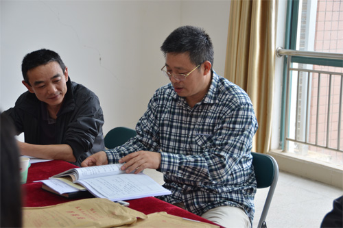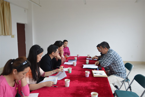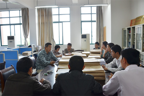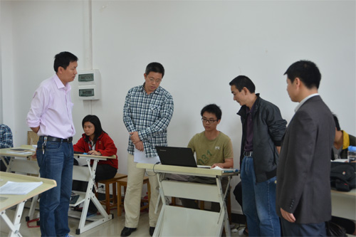 张学洪书记(左二)在环境学院设计室检查学生毕业设计(论文)工作