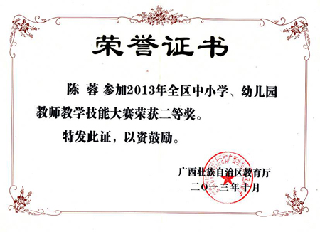 附属小学陈蓉老师在广西中小学教师教学技能大赛中喜获二等奖