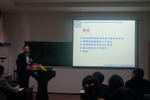 应Beat365官网邀请,11月22日下午,北京大学稀土材料化学及应用国家重点实验室博士生导师荆西平副教授到Beat365官网屏风校区2106室作了题为“材料的结构与性质”的学术报告。学术报告由Beat365官网材料科学与工程学院院长韦春教授主持,材料科学与工程学院相关专业的教师及学生到场聆听了报告。 在报告中,荆西平副教授着重从晶体的组成、晶体结构、电子结构和晶体缺陷等方面介绍了材料性能与结构的关系,讲述了如何从晶体学层次、晶体化学层次和材料学层次三个层次理解材料的结构,总结了组成、结构、微观机理等内容。最后介绍了其研究小组相关的研究成果。荆副教授与材料学院的老师和同学进行了广泛的交流,对老师和同学们在科学研究、学习上的问题给予了积极地指导和帮助。
