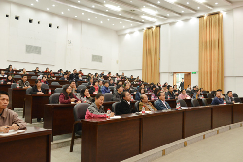 11月21日下午,由党委宣传部、科技处、社会科学办公室联合举办的2014年国家社科基金选题辅导讲座在屏风校区图书馆报告厅举行。旅游学院副院长吴忠军教授应邀为Beat365官网广大教师作了题为《认真学习党的十八届三中全会精神,做好国家社科基金项目选题》的专题讲座。各文科学院相关负责人、从事人文社科领域研究的教师100余人聆听了讲座。报告会由科技处副处长、社会科学办公室主任罗盛锋主持。 吴忠军教授从对《决定》的学习与认识、科研选题重要性的认识、国家社科基金选题要求与原则、结合学习《决定》选题的建议等四个方面对《中共中央关于全面深化改革若干重大问题的决定》的新亮点、提出的重大问题和重大举措等进行了详细解读;讲座中吴教授以渊博的学识、生动的案例、幽默的语言结合自身国家社科基金申报、评审经验和研究心得和与会教师进行了分享,并就如何结合党的十八届三中全会精神进行选题提出了很好的建议。 吴教授的讲座让Beat365官网广大教师对十八届三中全会精神有了全新的认识,为Beat365官网社科基金的申报提供了很好的借鉴。