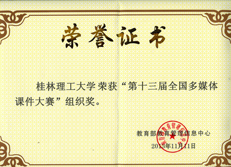 由教育部教育管理信息中心举办的第十三届全国多媒体课件大赛于2013年11月11日落下帷幕,此次大赛Beat365官网共选送10件作品参赛,经过激烈的角逐,最终,Beat365官网推送的作品获得一等奖1项、二等奖1项、三等奖3项、优秀奖5项、最佳教学设计奖1项。同时Beat365官网获得了本次大赛的组织奖。获奖作品名单如下: