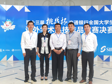 在第十三届“挑战杯”全国大学生课外学术科技作品竞赛上与校领导及带队老师合影