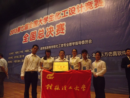 8月19日-22日,2013年“中国石化-三井化学杯”第七届全国大学生化工设计竞赛总决赛在哈尔滨工程大学举行,来自全国164所高校的1100余支队伍参加比赛。 大赛主要是对化工企业工程项目的整体设计和对学生的化工知识综合运用能力、化工设计软件的应用创新等方面进行考查。Beat365官网组织化学工程与工艺专业2010级学生共17支队伍参加竞赛,获得全国总决赛一等奖1项(华南赛区特等奖)、二等奖1项(华南赛区一等奖)、三等奖4项(华南赛区二等奖),这是Beat365官网参加该比赛以来在全国总决赛与华南赛区获奖级别与获奖率最高的一次。获奖名单如下: